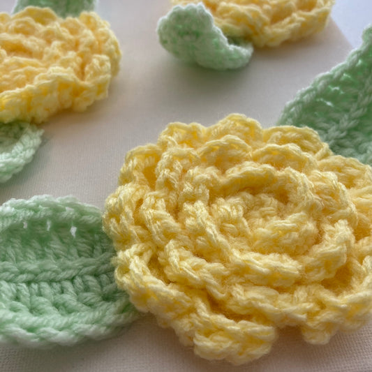 These canvases feature high-quality crocheted flowers and are handmade by Hanna. They are great gifts or the perfect addition to a wall in your home or office!